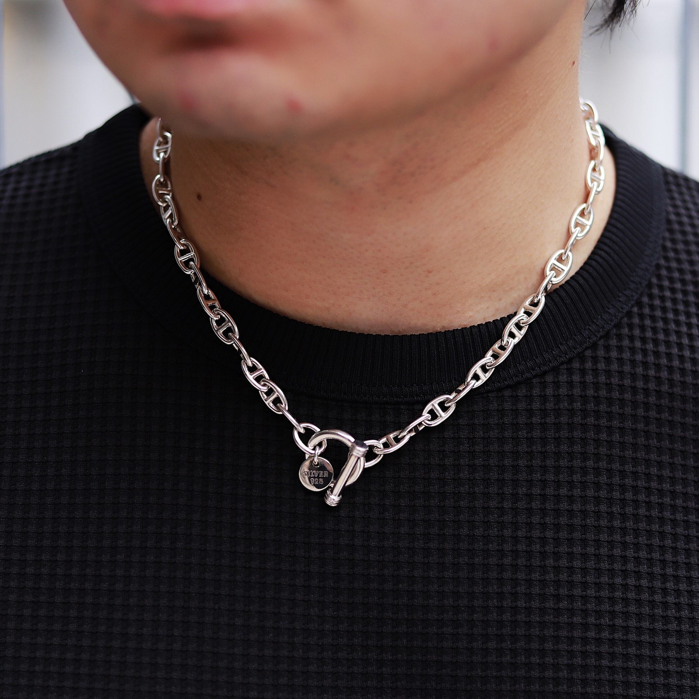 【圧倒的な存在感】F.H. シルバーネックレス(アンカーチェーン5mm):#N042-45cm
