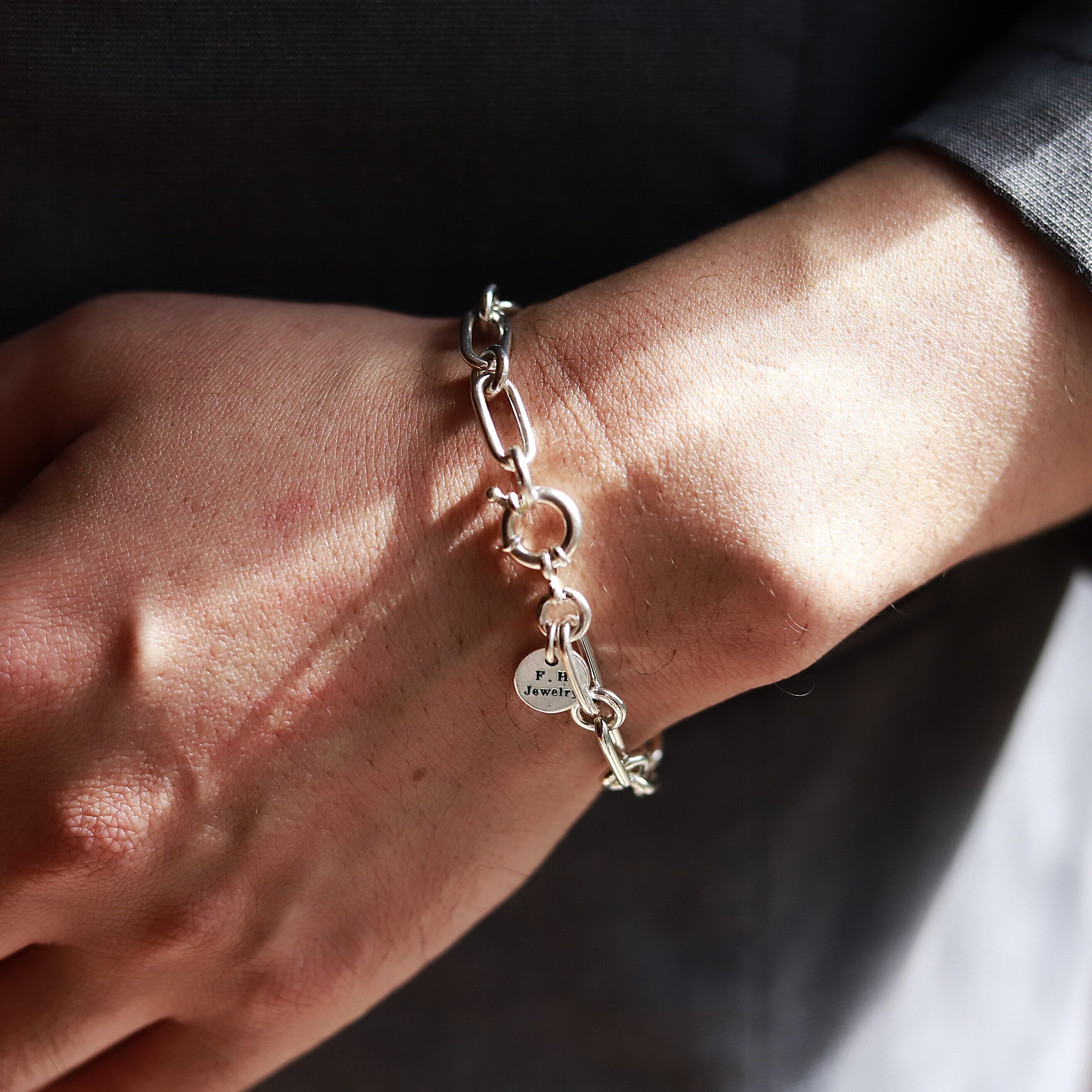 【トレンド感溢れるブレスレット】F.H. シルバーブレスレット(フロートロックブレスレット):#B041-18cm