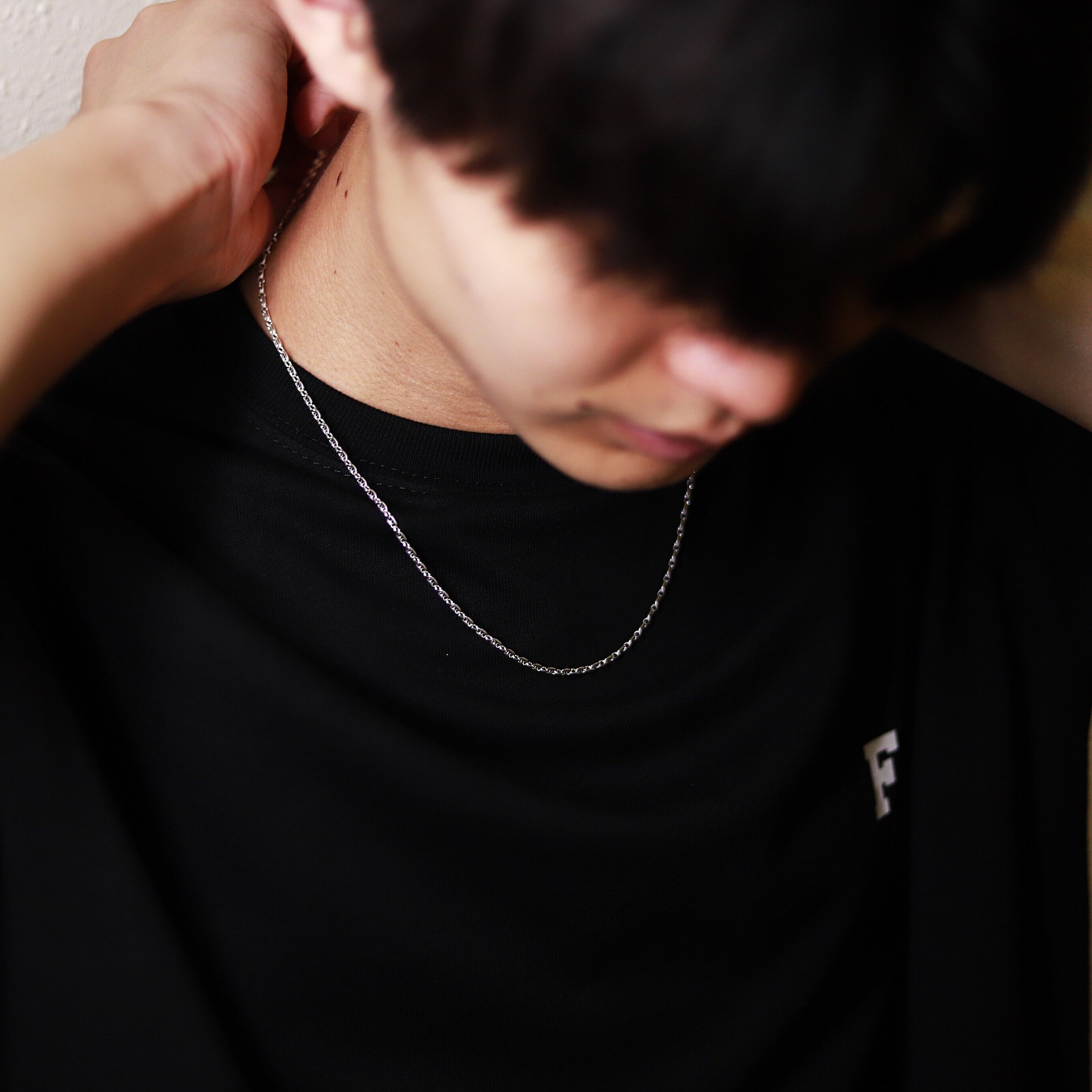【やわらかい雰囲気になる】F.H.シルバーネックレス(マリーナチェーンネックレス):#N044-50cm