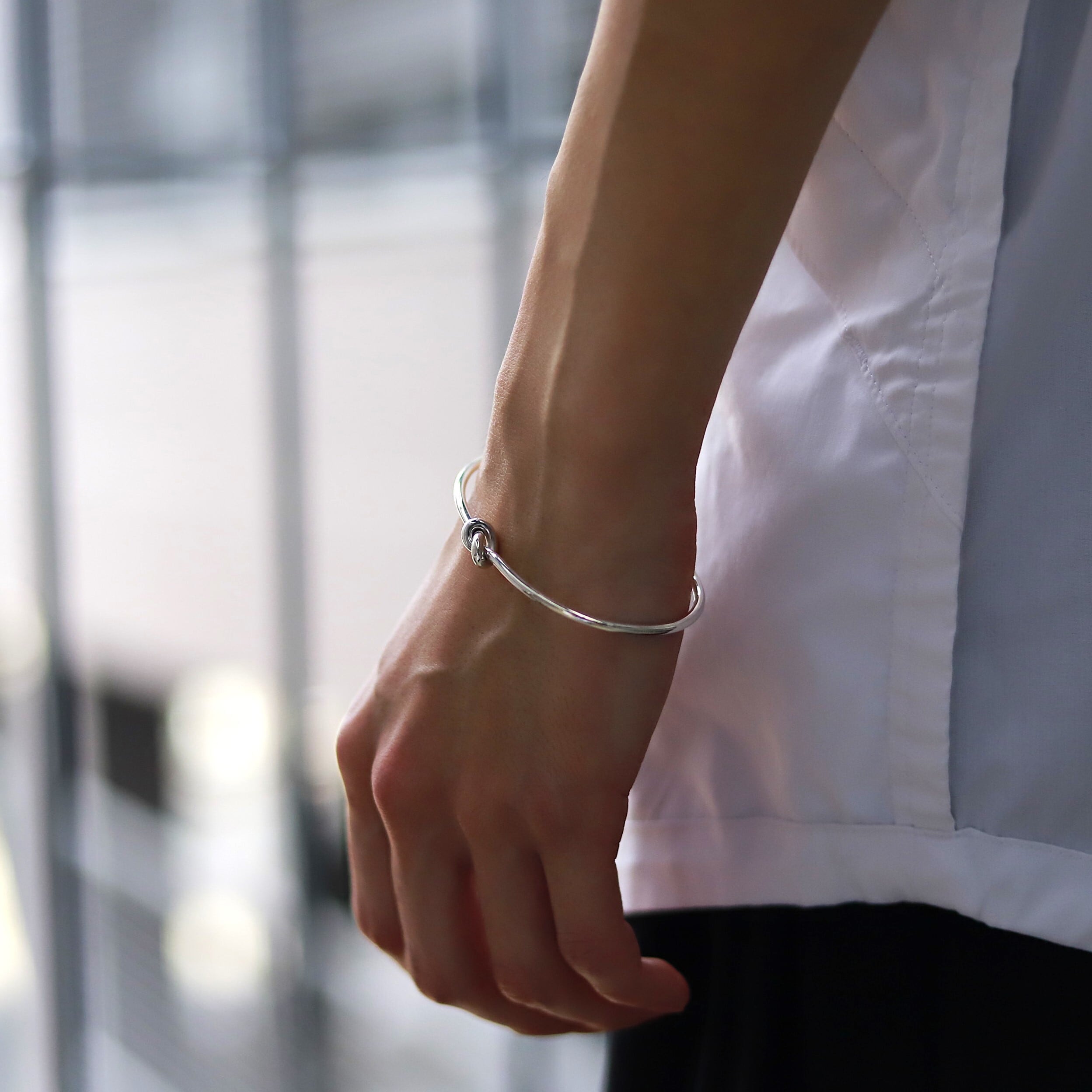 ■ お菓子のプレッツェルをイメージした細みで上品なバングル。