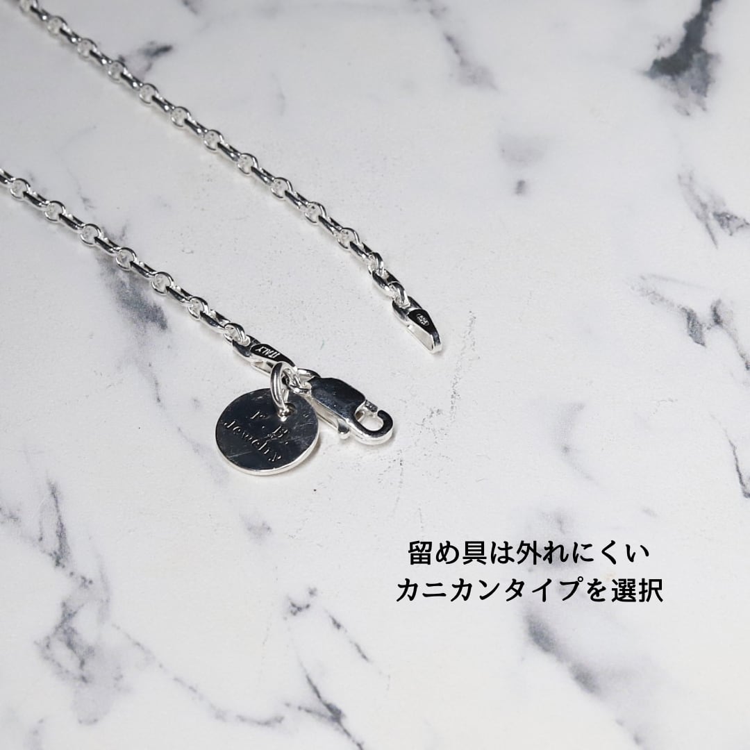 ※シルバーアクセサリーで一般的に使用される素材「silver925」。925とは銀(silver)の含有率が92.5%であることを示しています。Silverはとても柔らかく、silver100%ではアクセサリーの素材としては向いていない為その他の金属、主に銅などを混ぜ合わせております。
