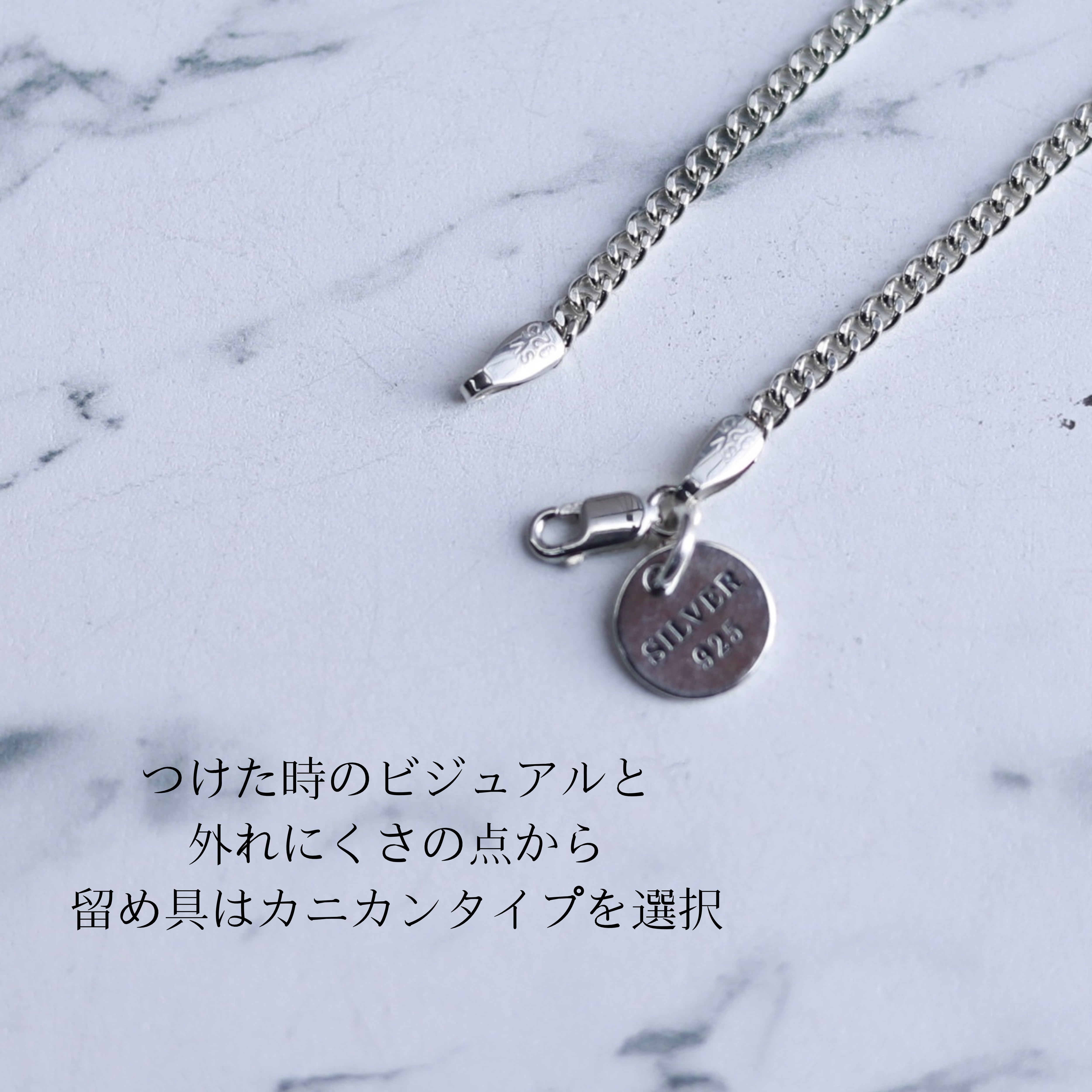 ※シルバーアクセサリーで一般的に使用される素材「silver925」。925とは銀(silver)の含有率が92.5%であることを示しています。Silverはとても柔らかく、silver100%ではアクセサリーの素材としては向いていない為その他の金属、主に銅などを混ぜ合わせております。