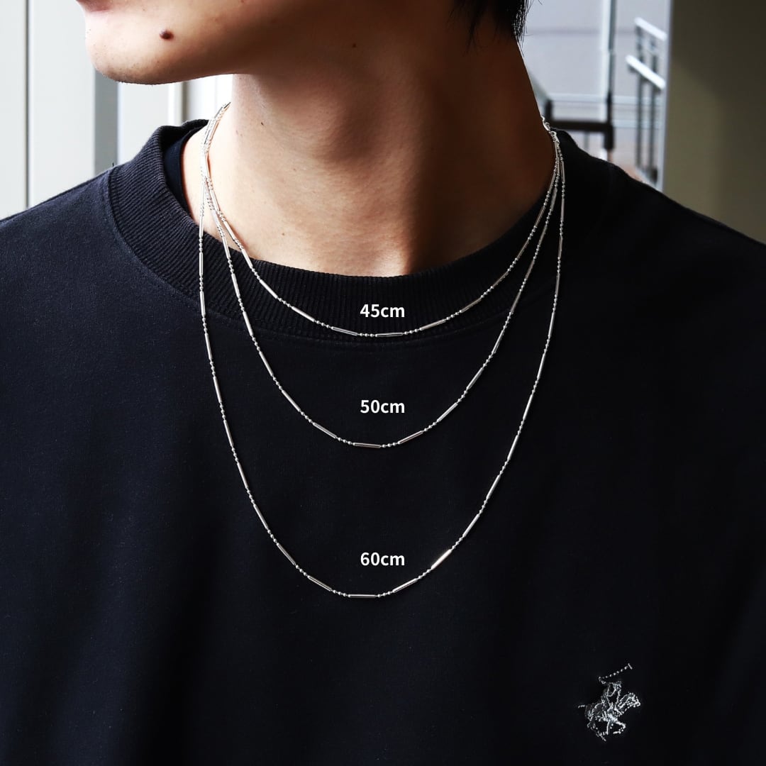 ■45cmは短めにつけたい方、首周り細めの方におすすめの長さです。
