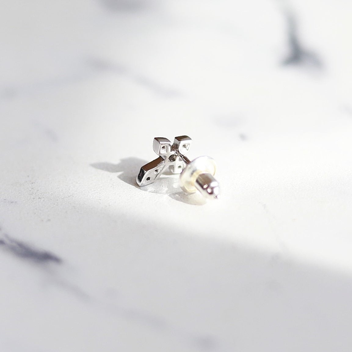 【クロスモチーフもきれいめに】F.H.シルバーピアス(ジルコンクロス):#E070