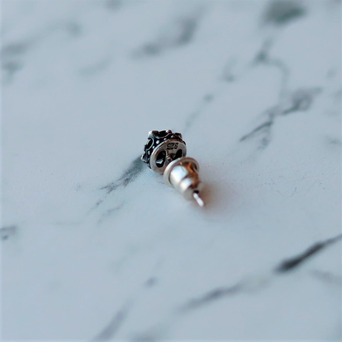 ■ 当店のピアスキャッチは、中にシリコンゴムの詰まった925シルバー製キャッチをお付けいたしております。弾力性のあるシリコンゴムで外れにくいです。当店スタッフもお気に入りのキャッチです。