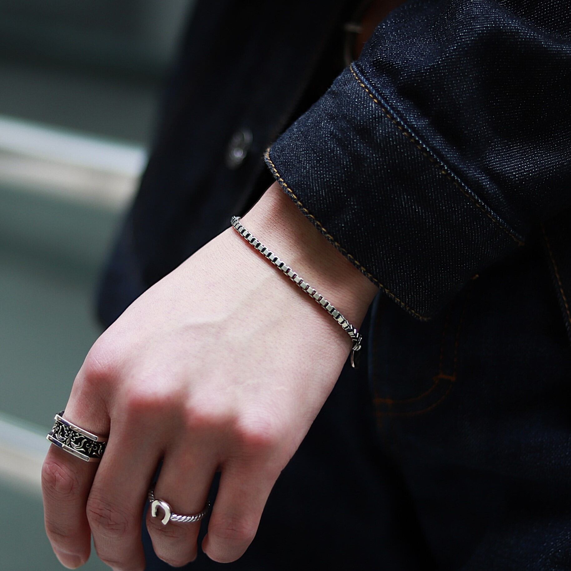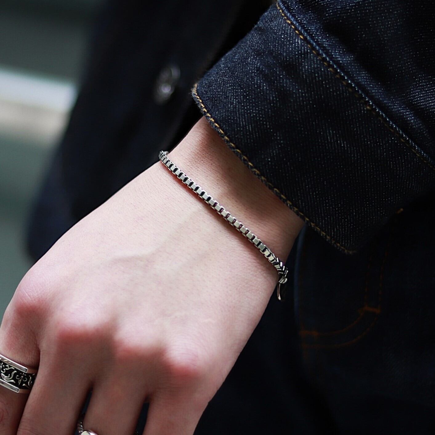【ちらりと見せて色っぽい】F.H. シルバーブレスレット(BOXチェーン 3mm): #B028-19cm