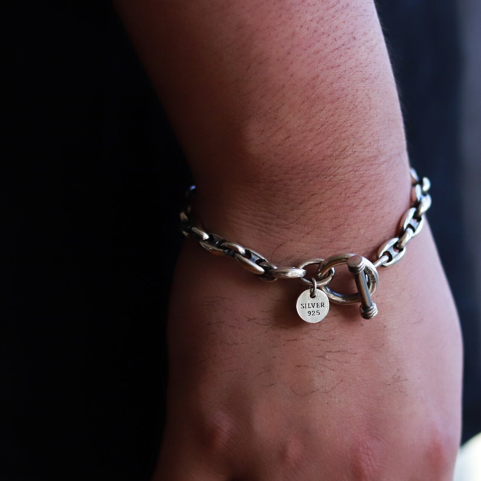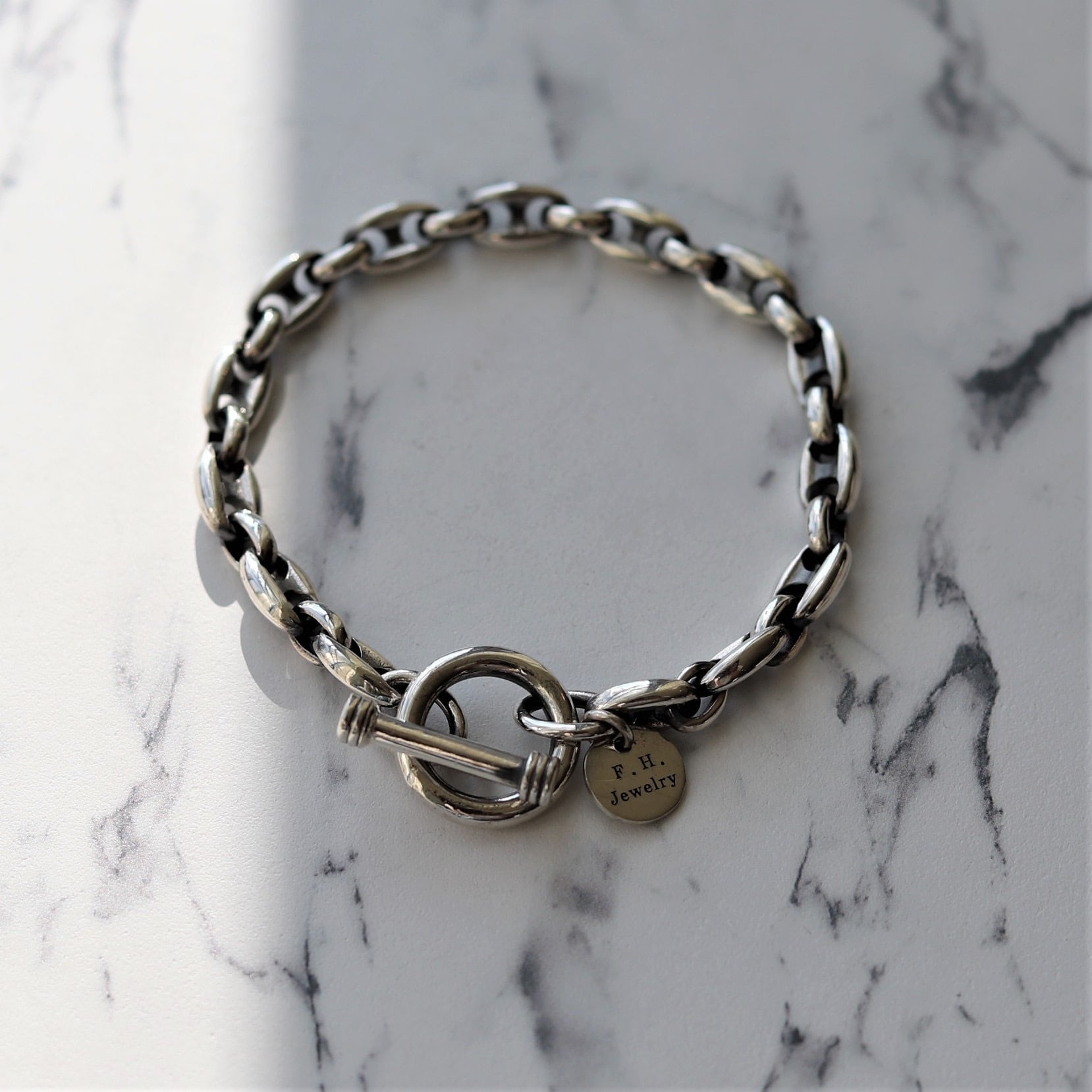 【腕が太めこそ似合う!】F.H. シルバーブレスレット(オーバルアンカーチェーン 7mm): #B003-21cm