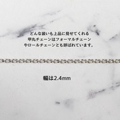 ■ 細めで極めてシンプルな甲丸チェーンですがシルバー独特な輝きがどんな装いも上品に見せてくれます。甲丸チェーンはフォーマルチェーンやロールチェーンとも呼ばれシーンや世代を選びません。