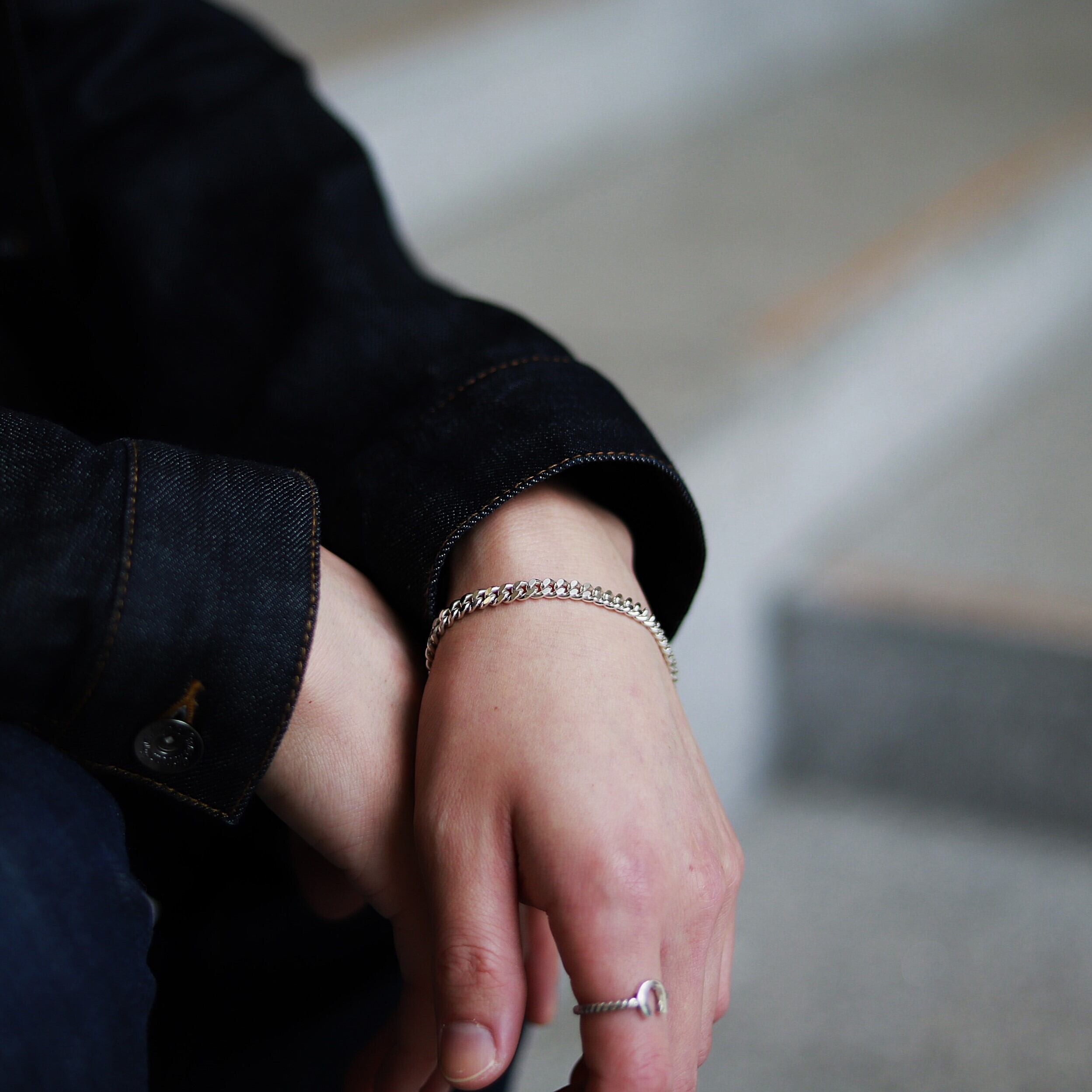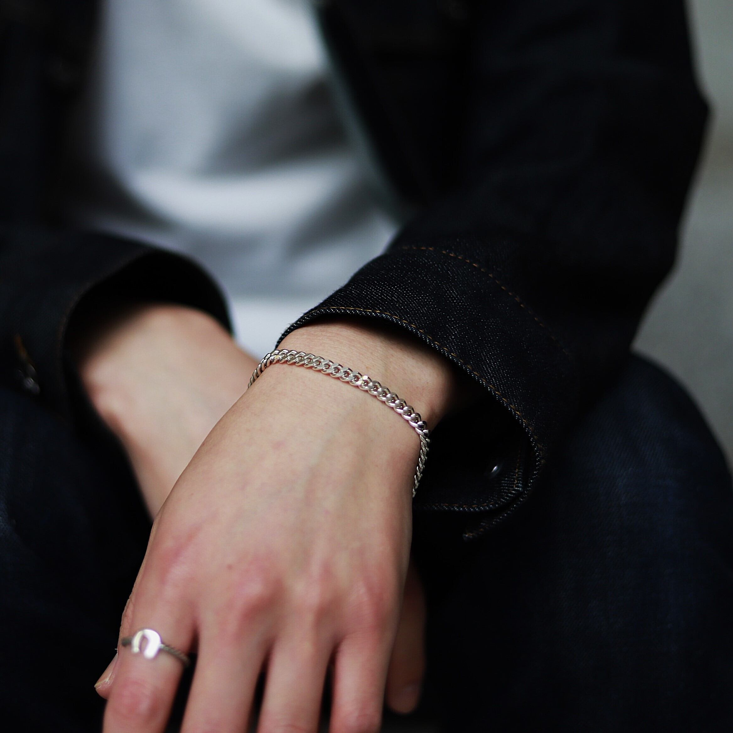 ■2面カットのベーシックな喜平チェーンブレスレットはシーンや世代を選びません。