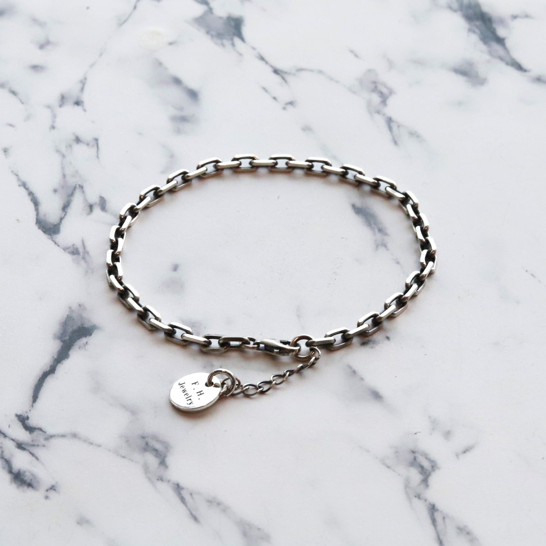 【サイズに迷ったら、これ!】F.H. シルバーブレスレット (燻あずき アジャスター付き):#B014-18cm+3cm