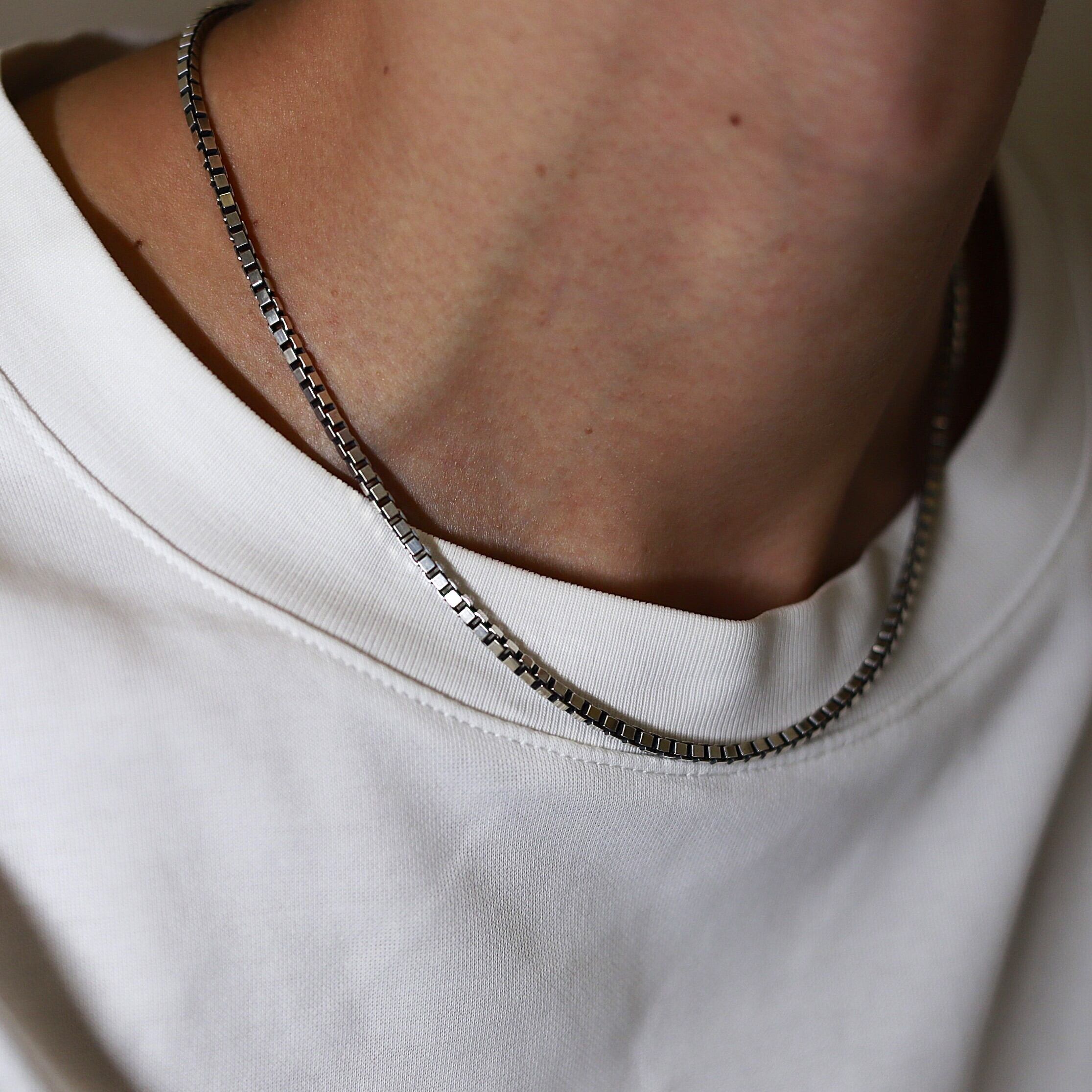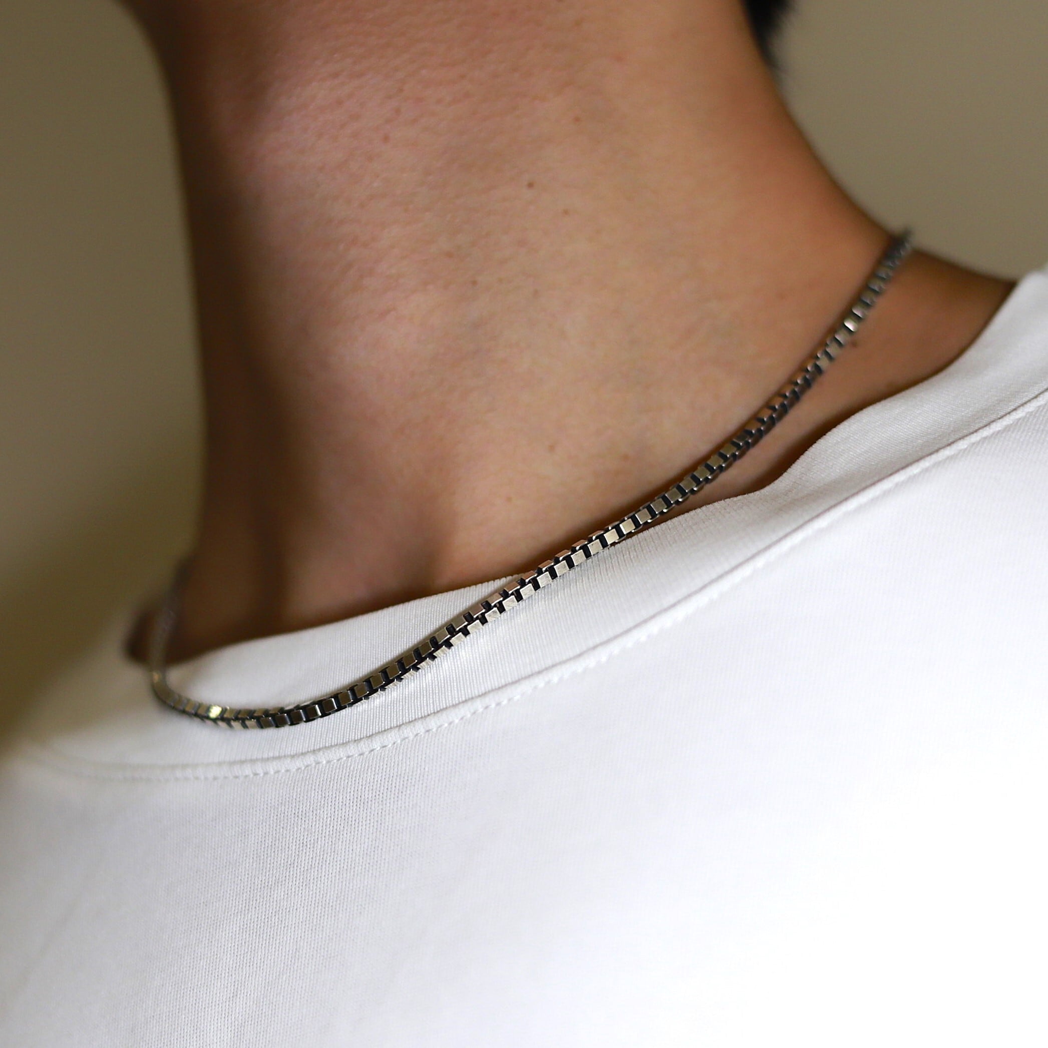 【ジュエリー上級者に見える】F.H. シルバーネックレス(BOXチェーン 3mm):#N014-45cm
