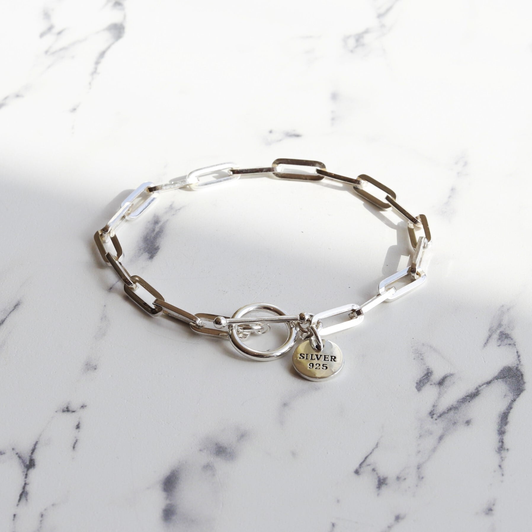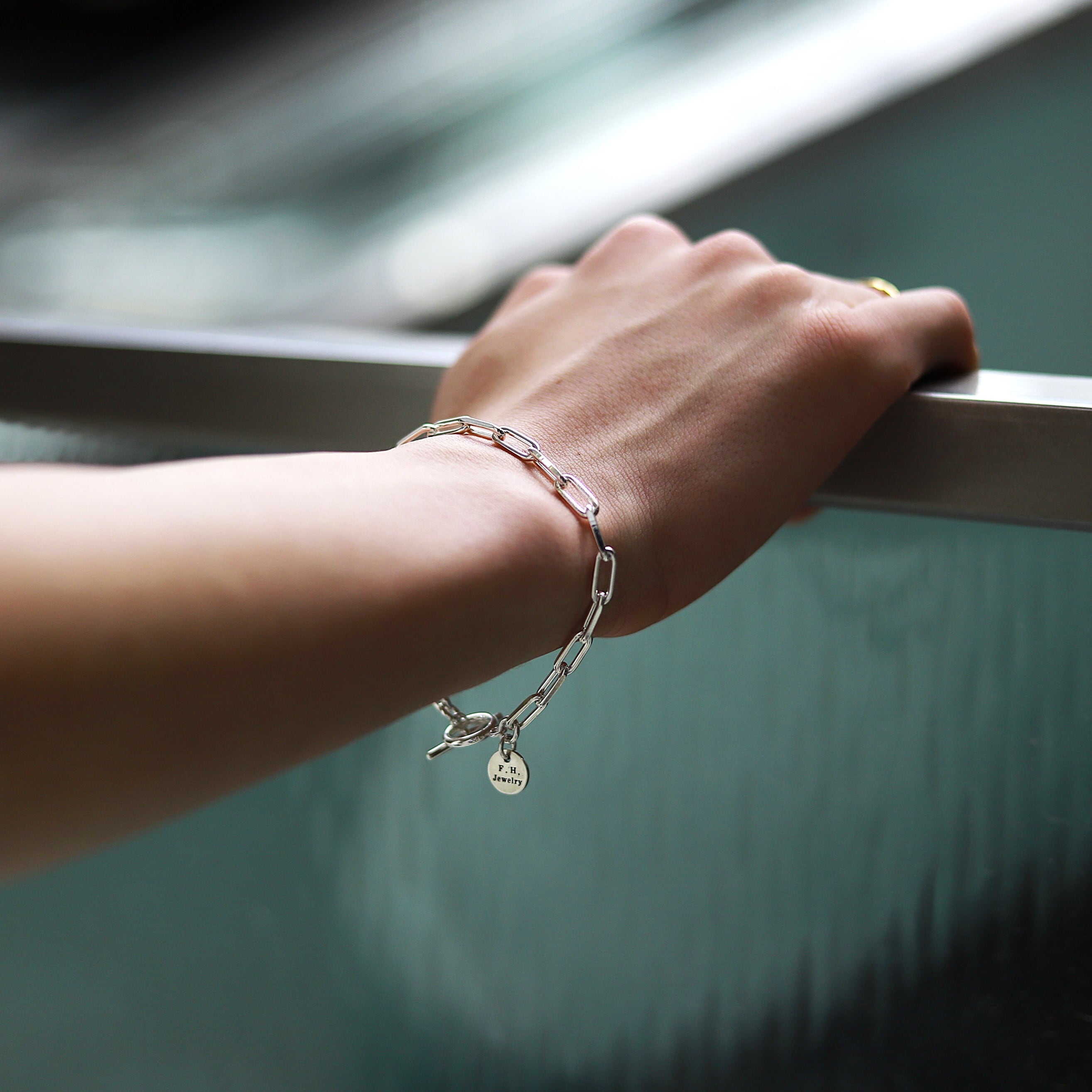 【大きめリンクで抜け感を】F.H. シルバーブレスレット(長あずきチェーン 4.5mm):#B019-19cm