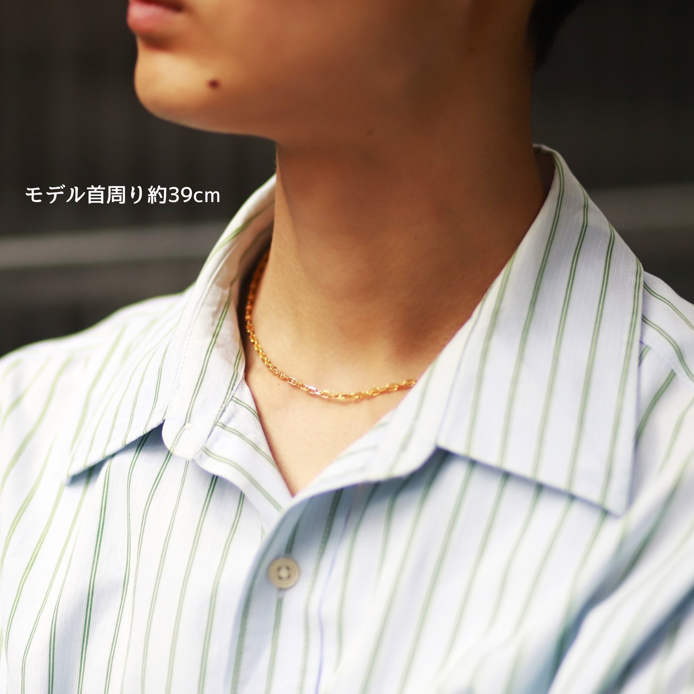 【華奢なゴールドで品よく】F.H. シルバーネックレス(アンカーチェーン ゴールドコーティング 3mm):#N018GP-45cm